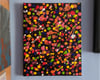 The style for this painting was actually inspired by a bag of Skittles...I love the fun bright colours of the sweets and thought they would pop against a black background. Once the colours hit the canvas and the painting came together I chose the name as it looked like the aftermath of a space battle